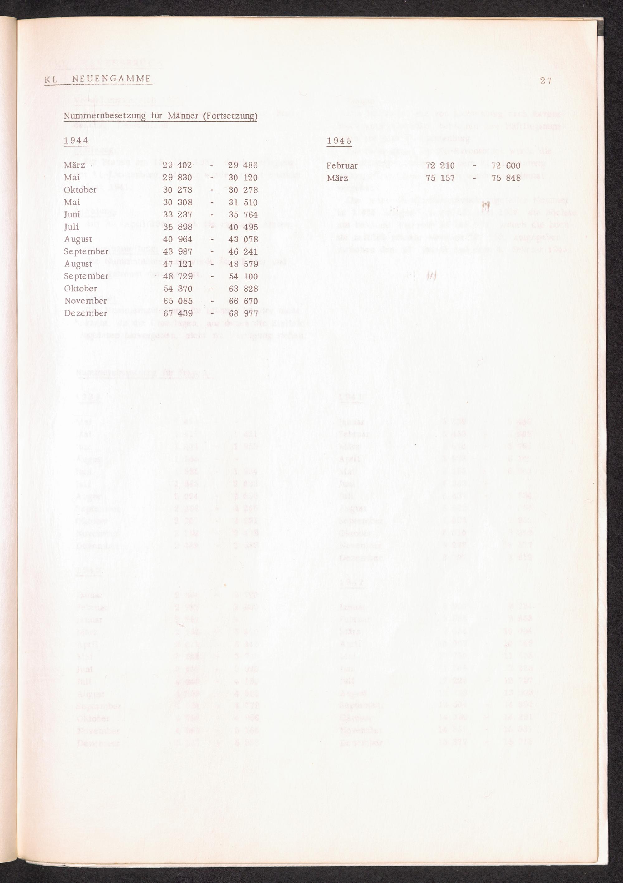 Häftlingsnummernzuteilung in Konzentrationslagern (mit Ergänzungen) KL Neuengamme