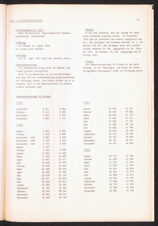 Häftlingsnummernzuteilung in Konzentrationslagern (mit Ergänzungen) KL Sachsenhausen