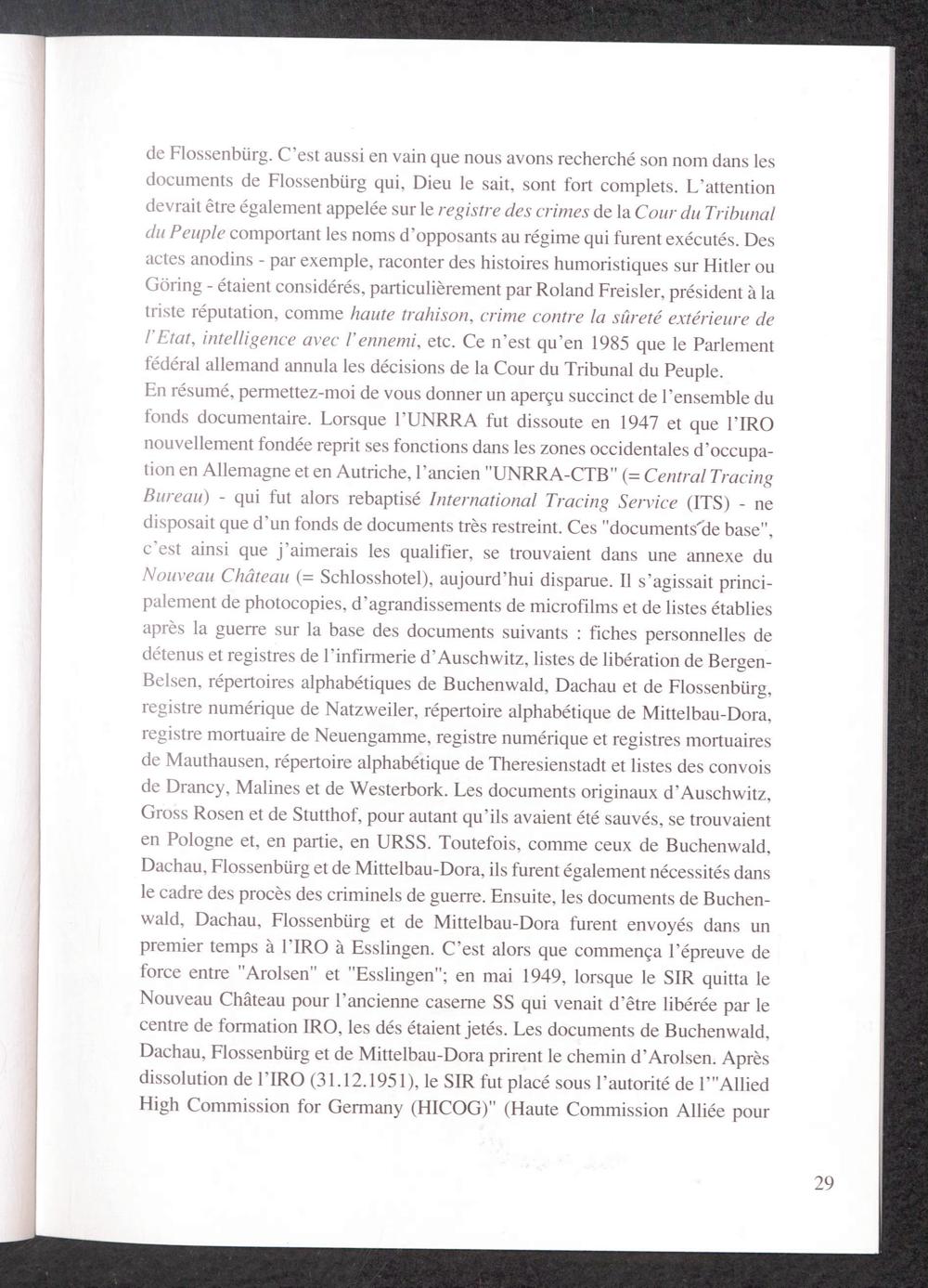 Cinquantenaire à Arolsen du Service International de Recherches : La persécution national-socialiste à travers les documents du SIR