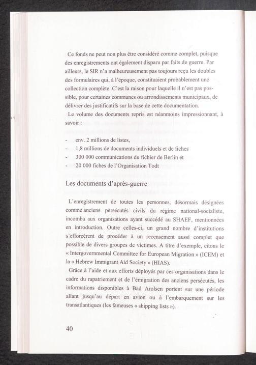 60 ans d'histoire et utilité de la documentation individuelle conservée au Service International de Recherches sur les anciens persécutés civils du régime national-socialiste
