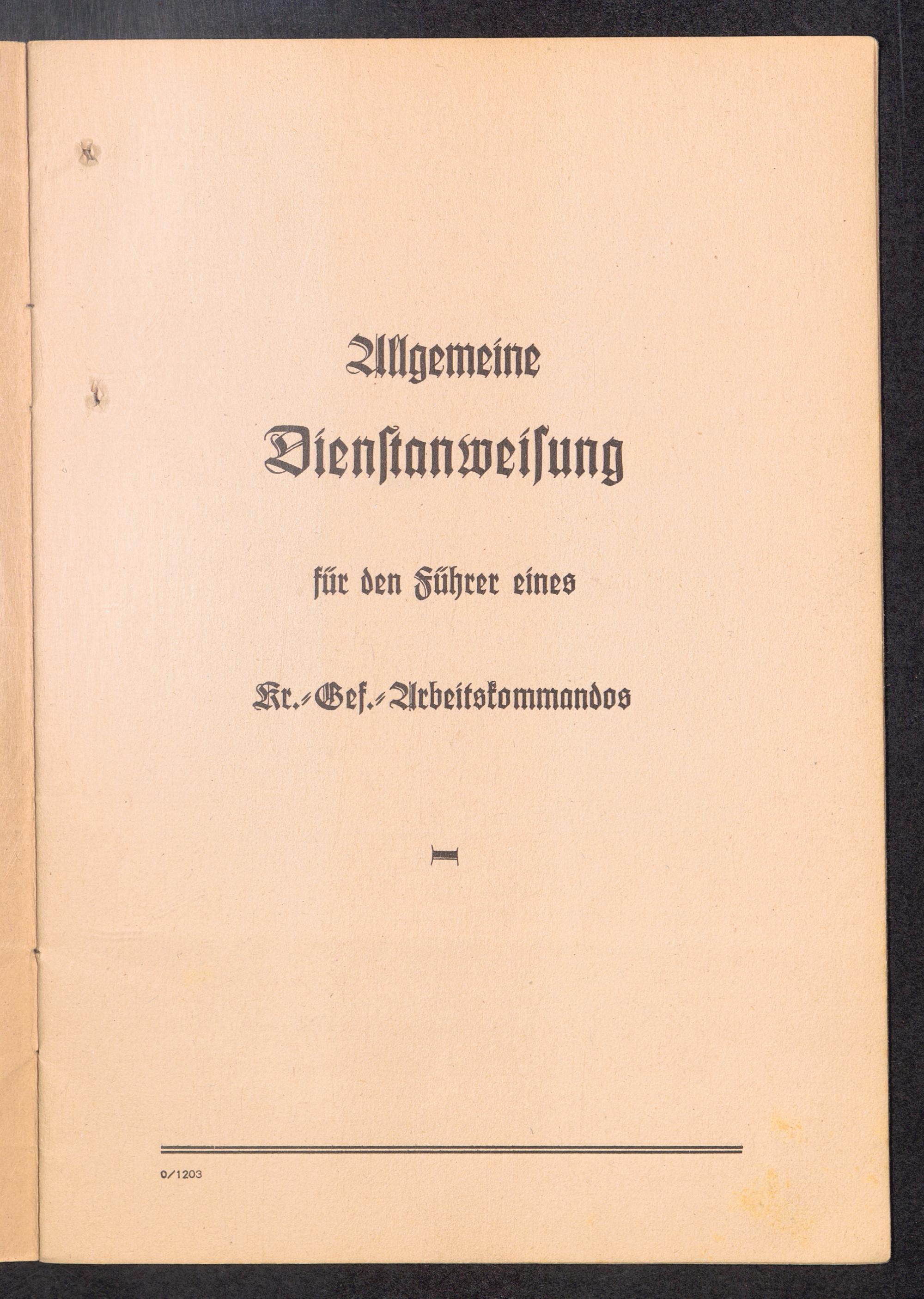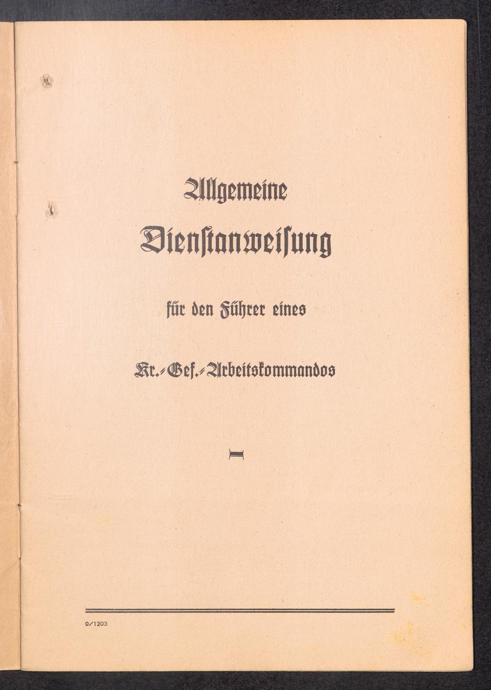 Allgemeine Dienstanweisung für den Führer eines Kr.-Gef.-Arbeitskommandos Titelblatt