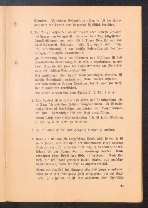 Allgemeine Dienstanweisung für den Führer eines Kr.-Gef.-Arbeitskommandos V. Sanitäre Vorschriften für die Arb.-Kdos.