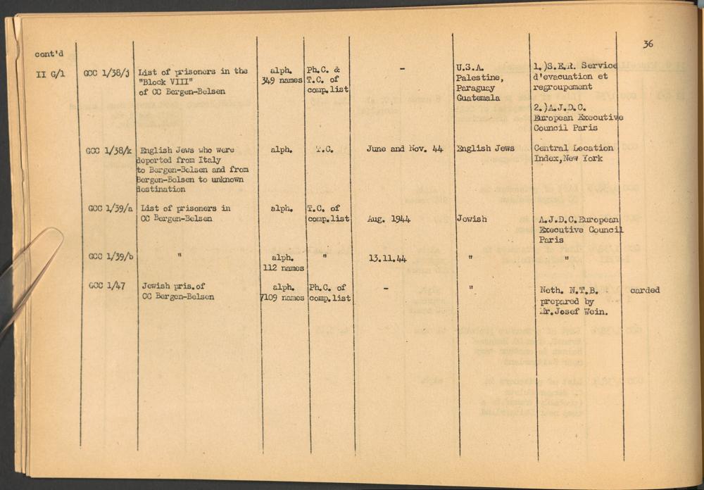 Band 1. Katalog der Konzentrationslager-Dokumente die sich bei dem International... CC Bergen-Belsen