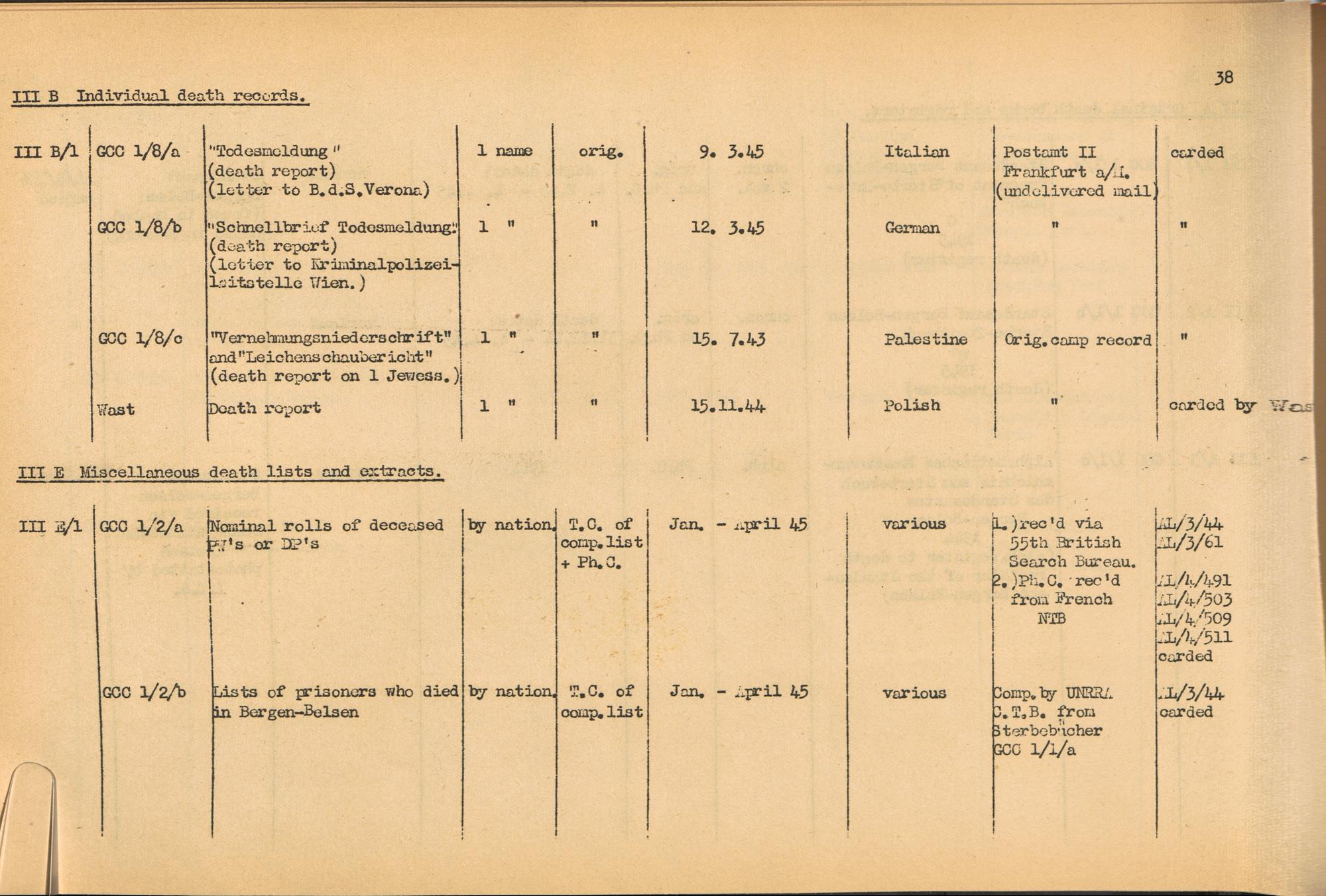 Band 1. Katalog der Konzentrationslager-Dokumente die sich bei dem International... CC Bergen-Belsen