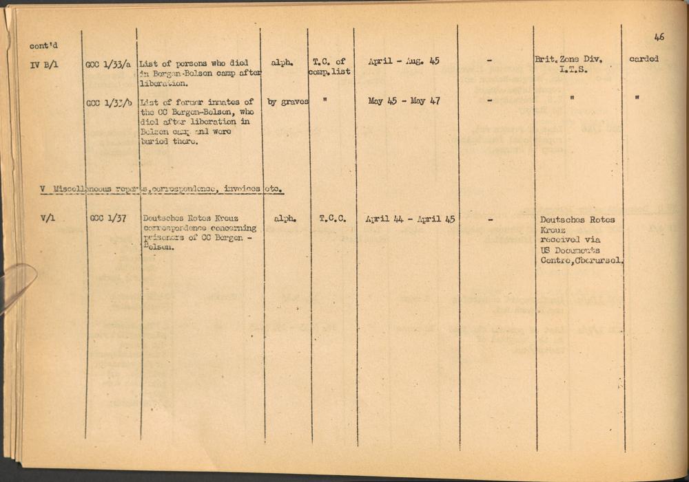 Band 1. Katalog der Konzentrationslager-Dokumente die sich bei dem International... CC Bergen-Belsen