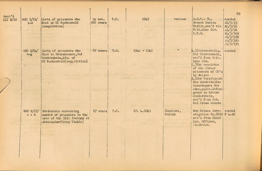 Band 1. Katalog der Konzentrationslager-Dokumente die sich bei dem International... CC Buchenwald