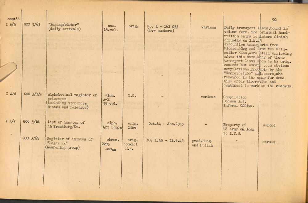 Band 1: Katalog der Konzentrationslager-Dokumente die sich bei dem International Tracing Service Allied High Commission for Germany befinden, Band 1