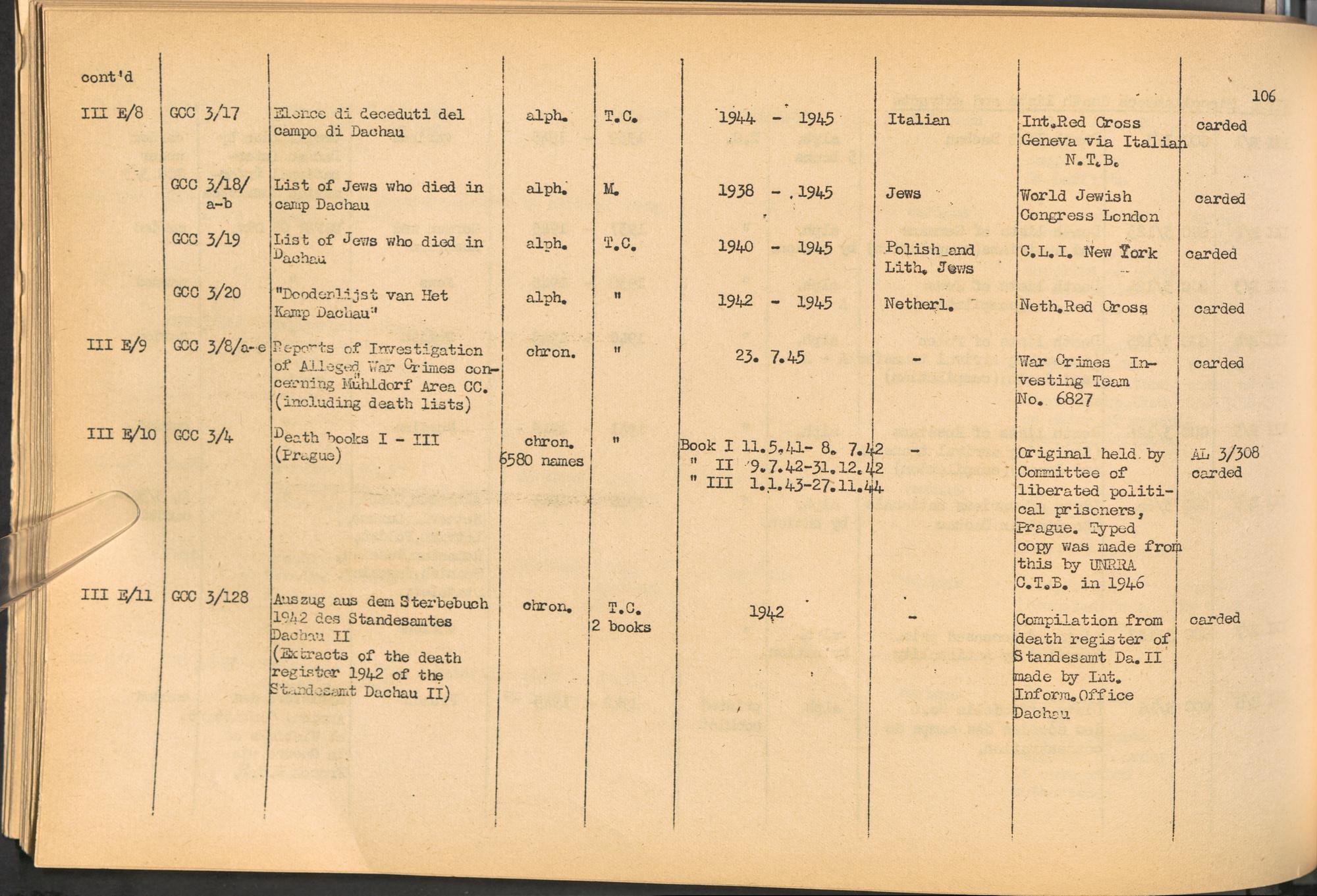 Band 1. Katalog der Konzentrationslager-Dokumente die sich bei dem International... Dachau