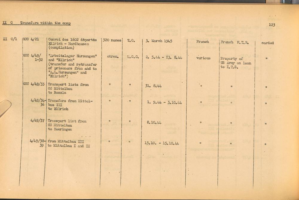 Band 1. Katalog der Konzentrationslager-Dokumente die sich bei dem International... CC Dora-Mittelbau