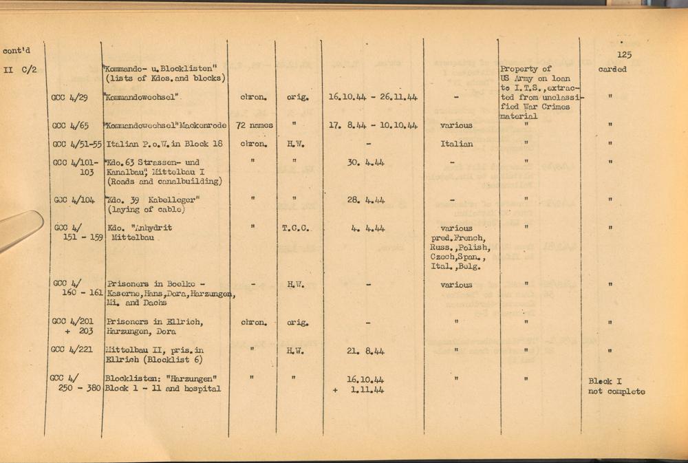 Band 1. Katalog der Konzentrationslager-Dokumente die sich bei dem International... CC Dora-Mittelbau
