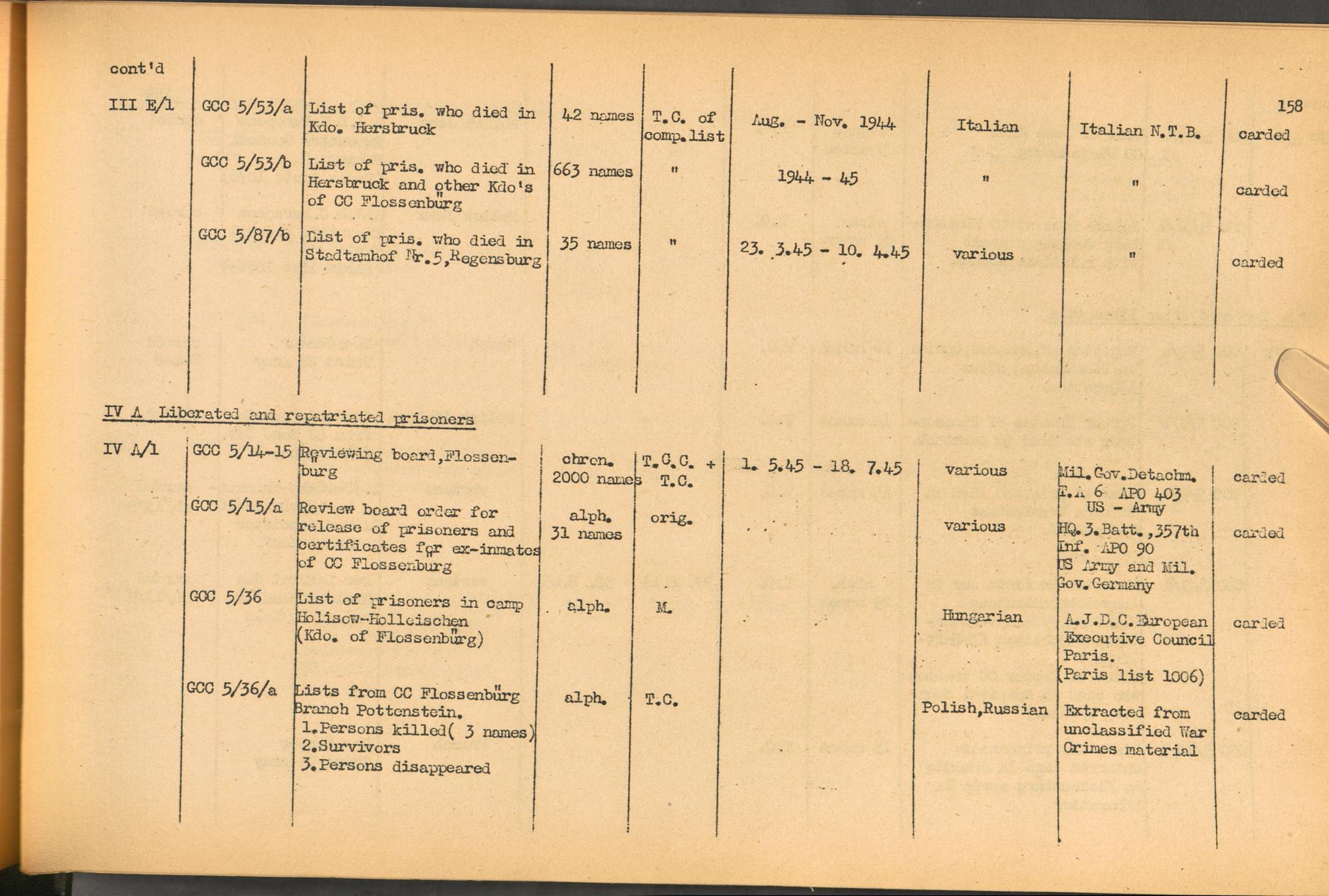 Band 1. Katalog der Konzentrationslager-Dokumente die sich bei dem International... CC Flossenbürg