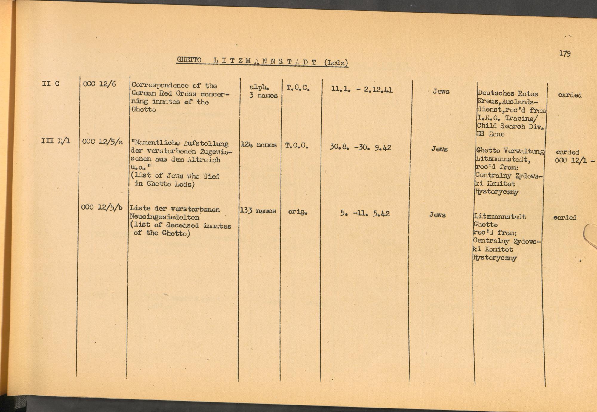 Band 1. Katalog der Konzentrationslager-Dokumente die sich bei dem International... Ghetto Litzmannstadt (Lodz)