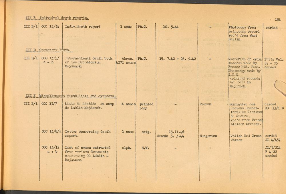 Band 1. Katalog der Konzentrationslager-Dokumente die sich bei dem International... CC Lublin-Majdanek