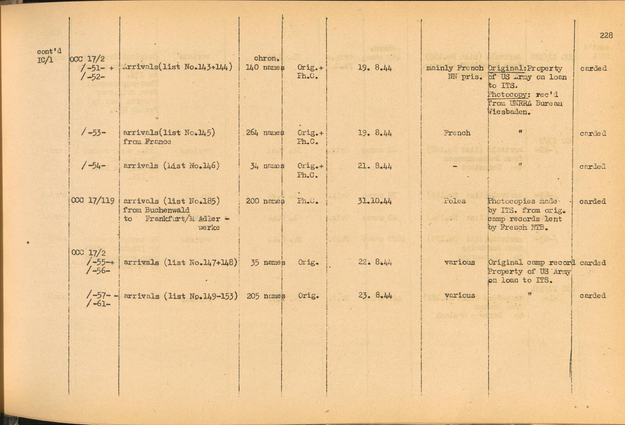 Band 2: Katalog der Konzentrationslager-Dokumente die sich bei dem International Tracing Service Allied High Commission for Germany befinden, Band 2