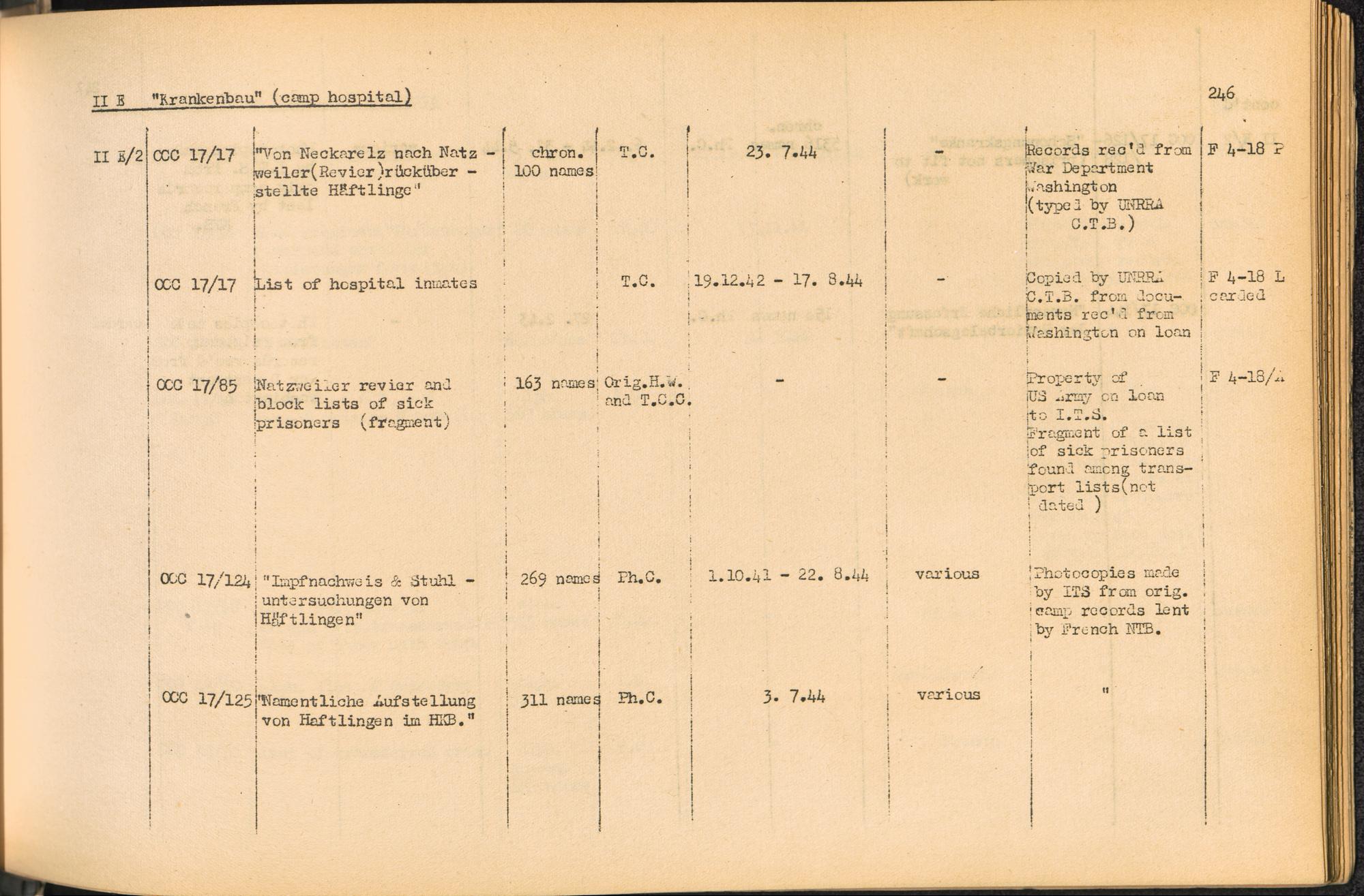 Band 2: Katalog der Konzentrationslager-Dokumente die sich bei dem International Tracing Service Allied High Commission for Germany befinden, Band 2