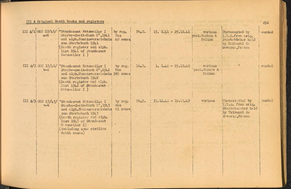 Band 2. Katalog der Konzentrationslager-Dokumente die sich bei dem International... CC Natzweiler