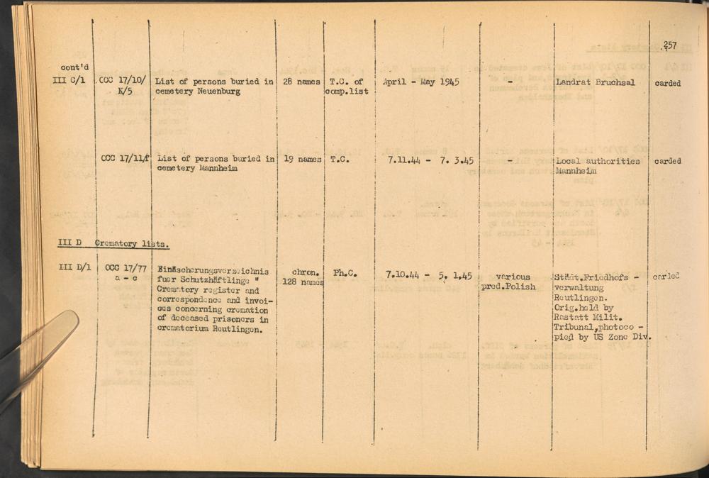 Band 2: Katalog der Konzentrationslager-Dokumente die sich bei dem International Tracing Service Allied High Commission for Germany befinden, Band 2