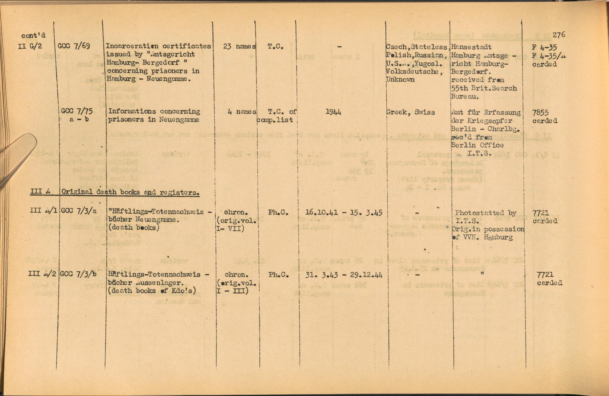Band 2. Katalog der Konzentrationslager-Dokumente die sich bei dem International... CC Neuengamme