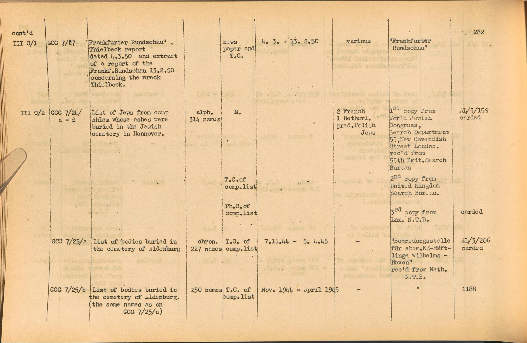 Band 2: Katalog der Konzentrationslager-Dokumente die sich bei dem International Tracing Service Allied High Commission for Germany befinden, Band 2