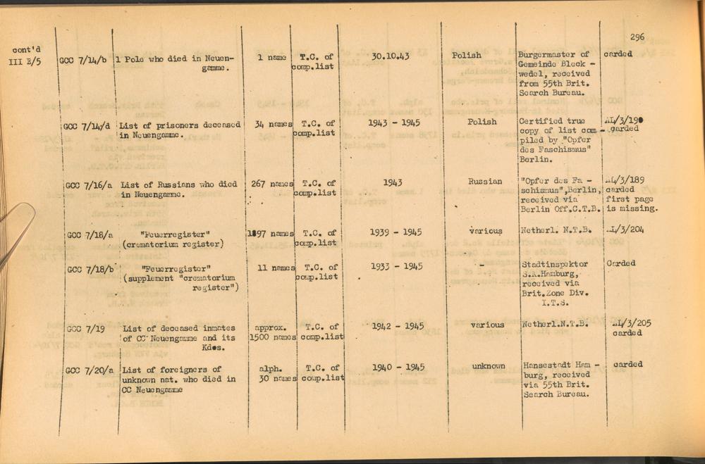 Band 2. Katalog der Konzentrationslager-Dokumente die sich bei dem International... CC Neuengamme