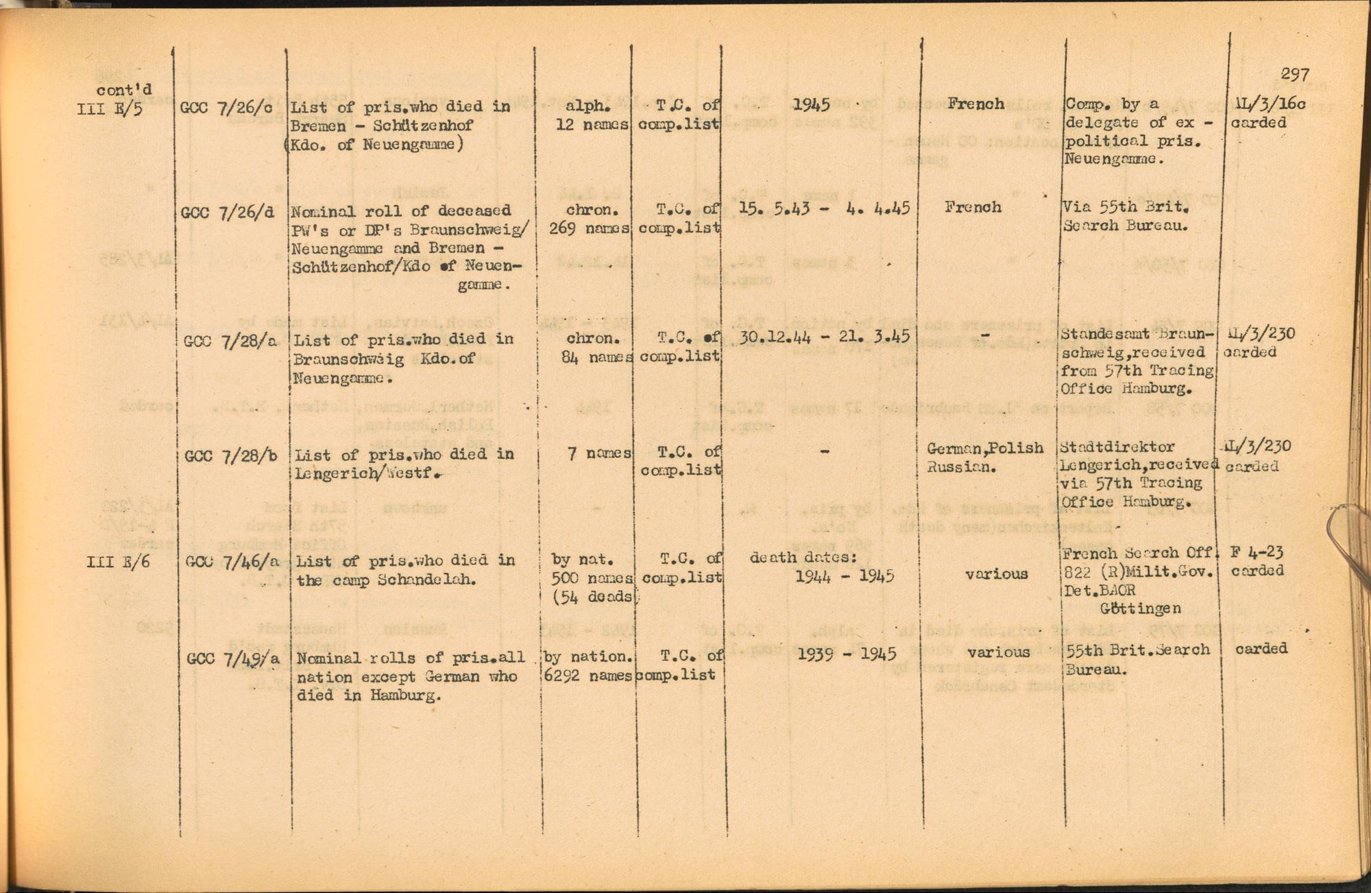 Band 2: Katalog der Konzentrationslager-Dokumente die sich bei dem International Tracing Service Allied High Commission for Germany befinden, Band 2
