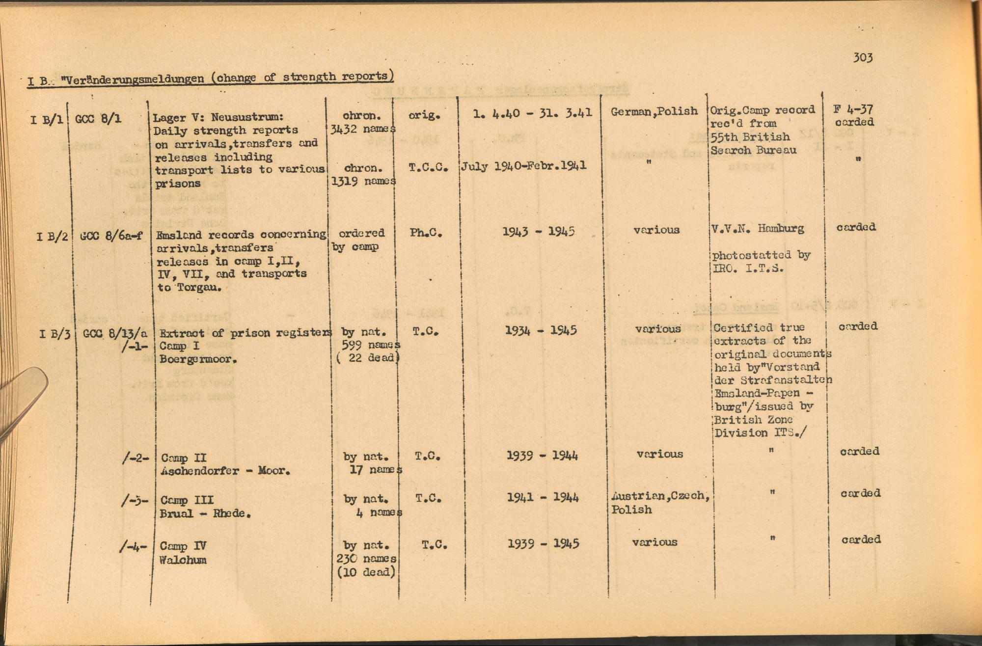 Band 2. Katalog der Konzentrationslager-Dokumente die sich bei dem International... Strafgefangenenlager Papenburg