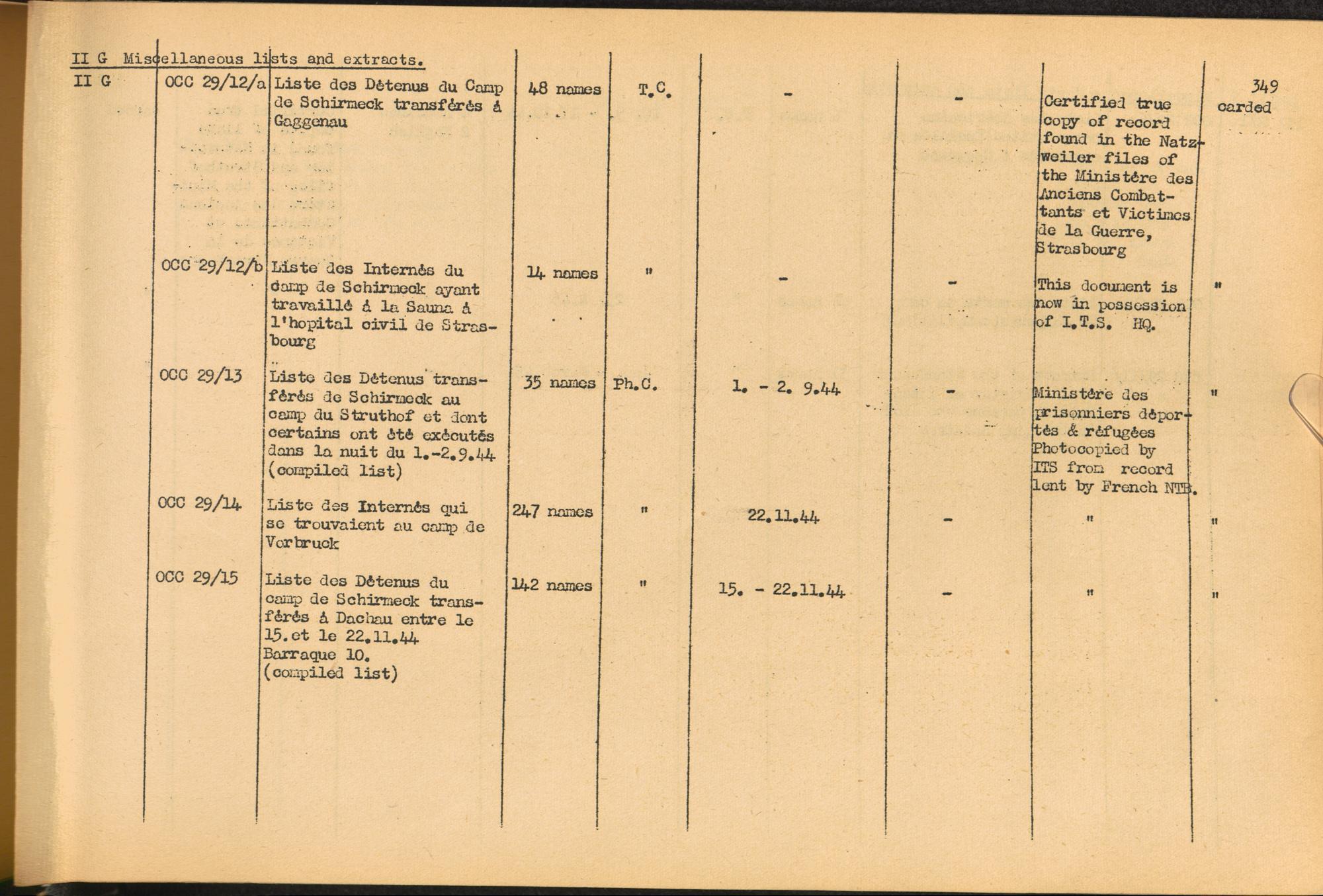 Band 2. Katalog der Konzentrationslager-Dokumente die sich bei dem International... Sicherungslager Vorbruck-Schirmeck
