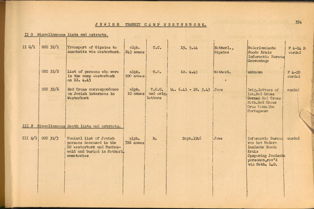 Band 2. Katalog der Konzentrationslager-Dokumente die sich bei dem International... Jewish Transit Camp Westerbork