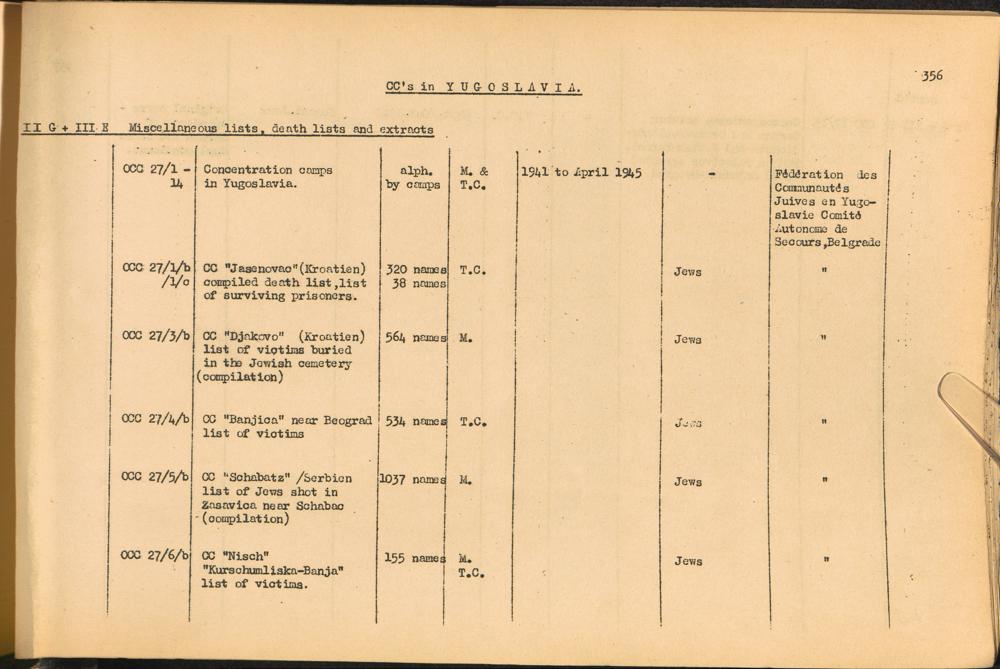 Band 2. Katalog der Konzentrationslager-Dokumente die sich bei dem International... CC's in Yugoslavia