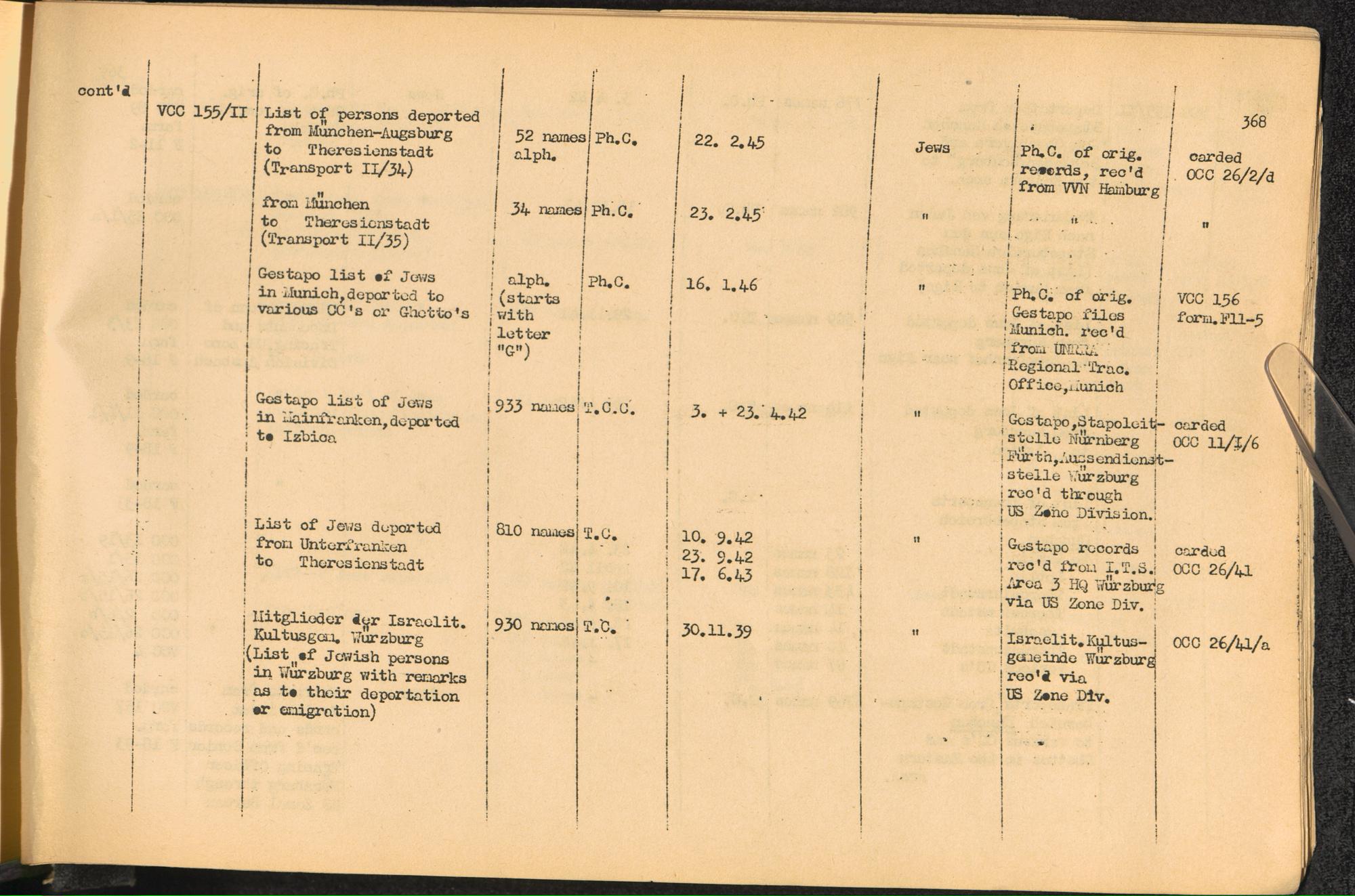Band 2. Katalog der Konzentrationslager-Dokumente die sich bei dem International... Gestapo Transports of Jews from Germany to the East