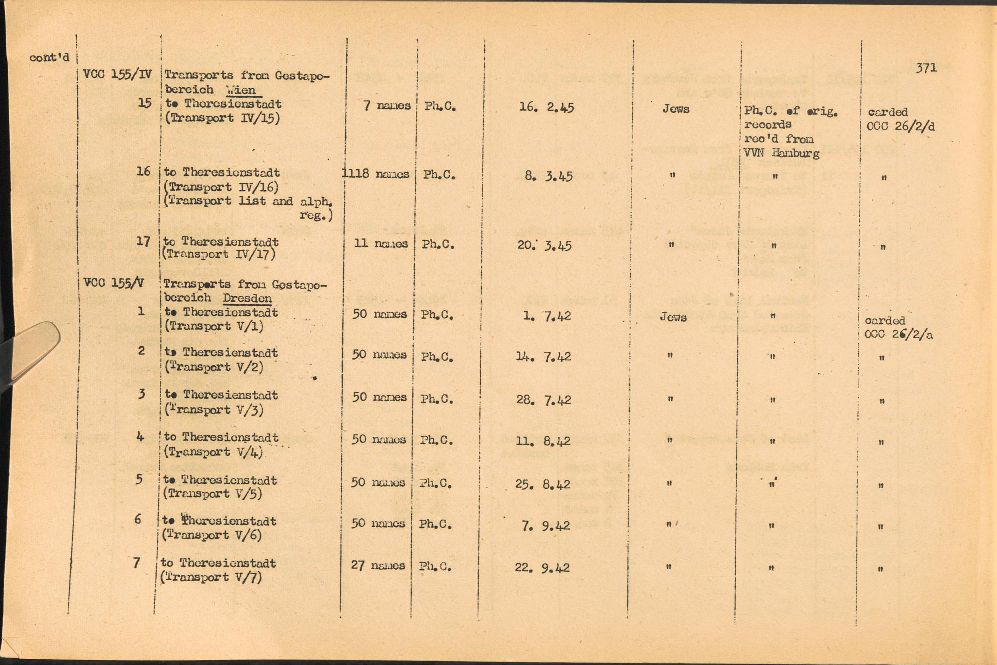 Band 2. Katalog der Konzentrationslager-Dokumente die sich bei dem International... Gestapo Transports of Jews from Germany to the East