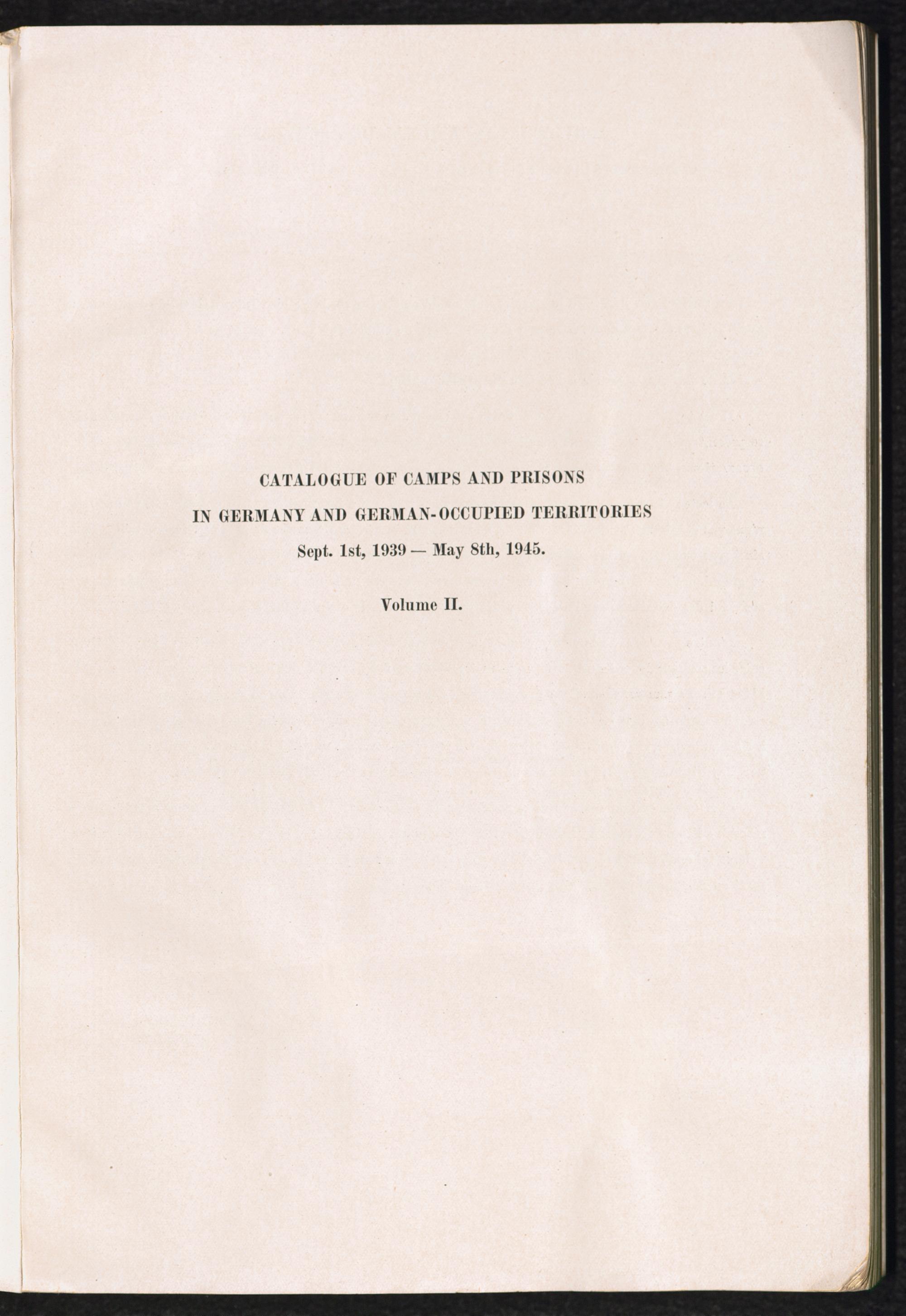 Band 2 (1950) Catalogue of Camps and Prisons in Germany and german-occupied Territories Sept. 1st, 1939 - May 8th, 1945 - Vol. II