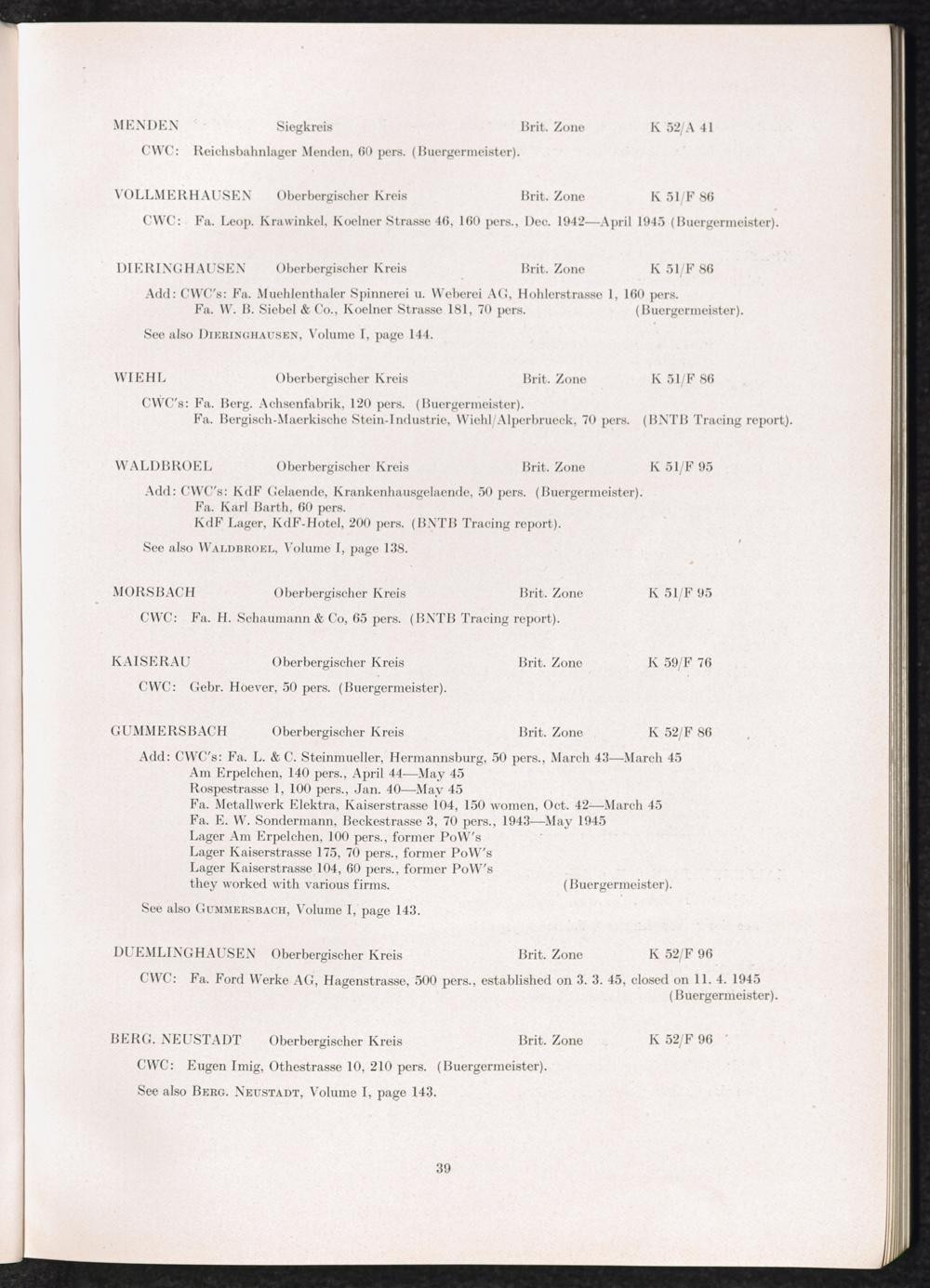 Band 2 (1950) Catalogue of Camps and Prisons in Germany and german-occupied Territories Sept. 1st, 1939 - May 8th, 1945 - Vol. II