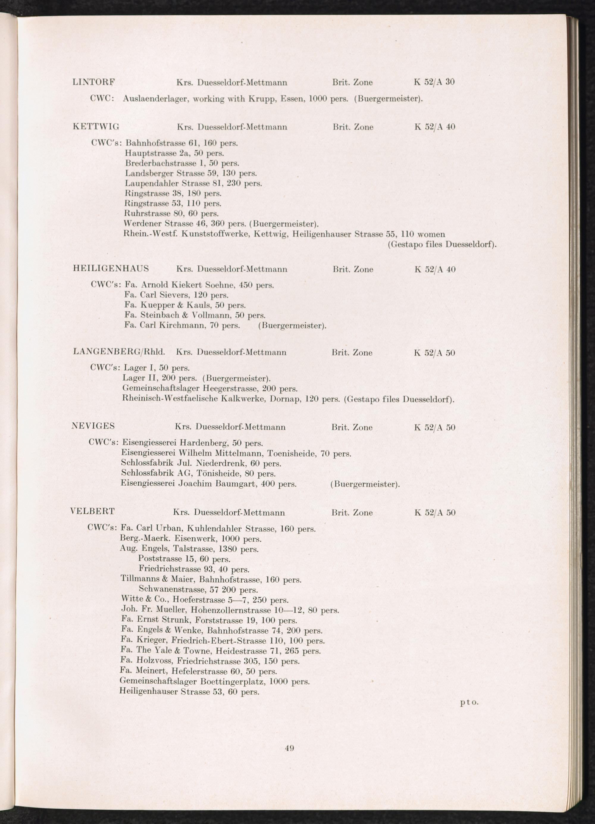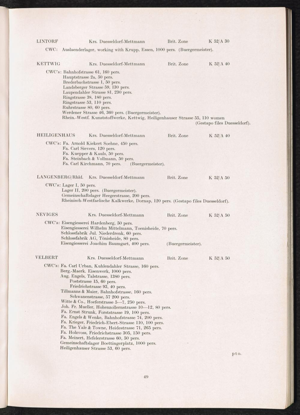 Band 2 (1950) Catalogue of Camps and Prisons in Germany and german-occupied Territories Sept. 1st, 1939 - May 8th, 1945 - Vol. II