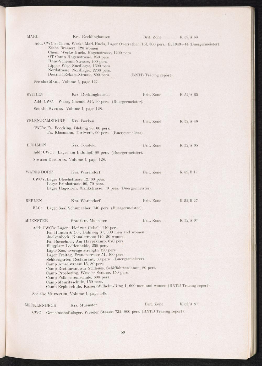 Band 2 (1950) Catalogue of Camps and Prisons in Germany and german-occupied Territories Sept. 1st, 1939 - May 8th, 1945 - Vol. II