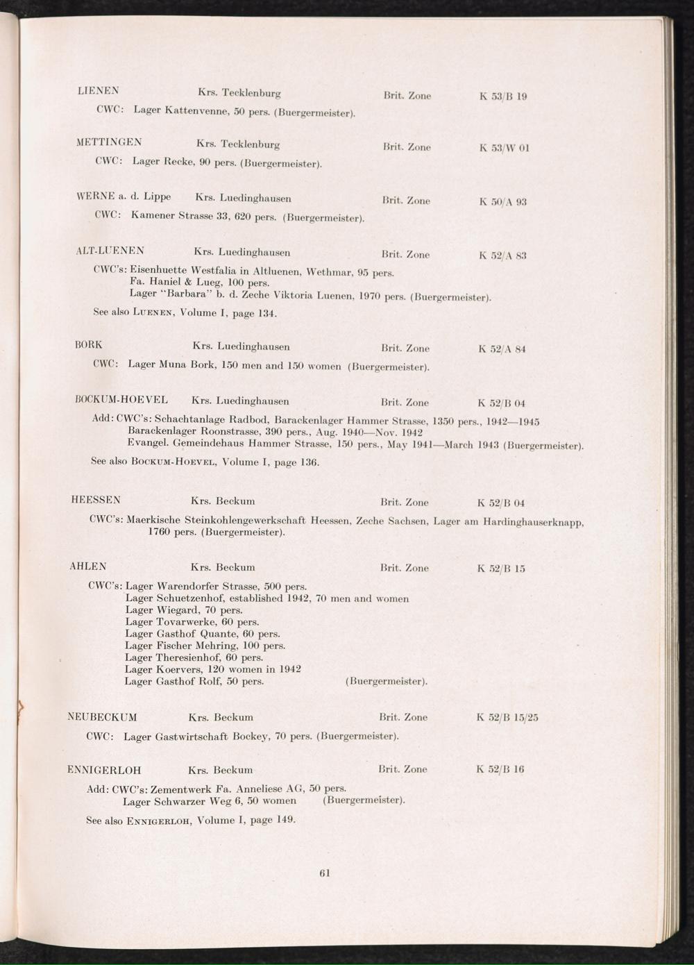 Band 2 (1950) Catalogue of Camps and Prisons in Germany and german-occupied Territories Sept. 1st, 1939 - May 8th, 1945 - Vol. II