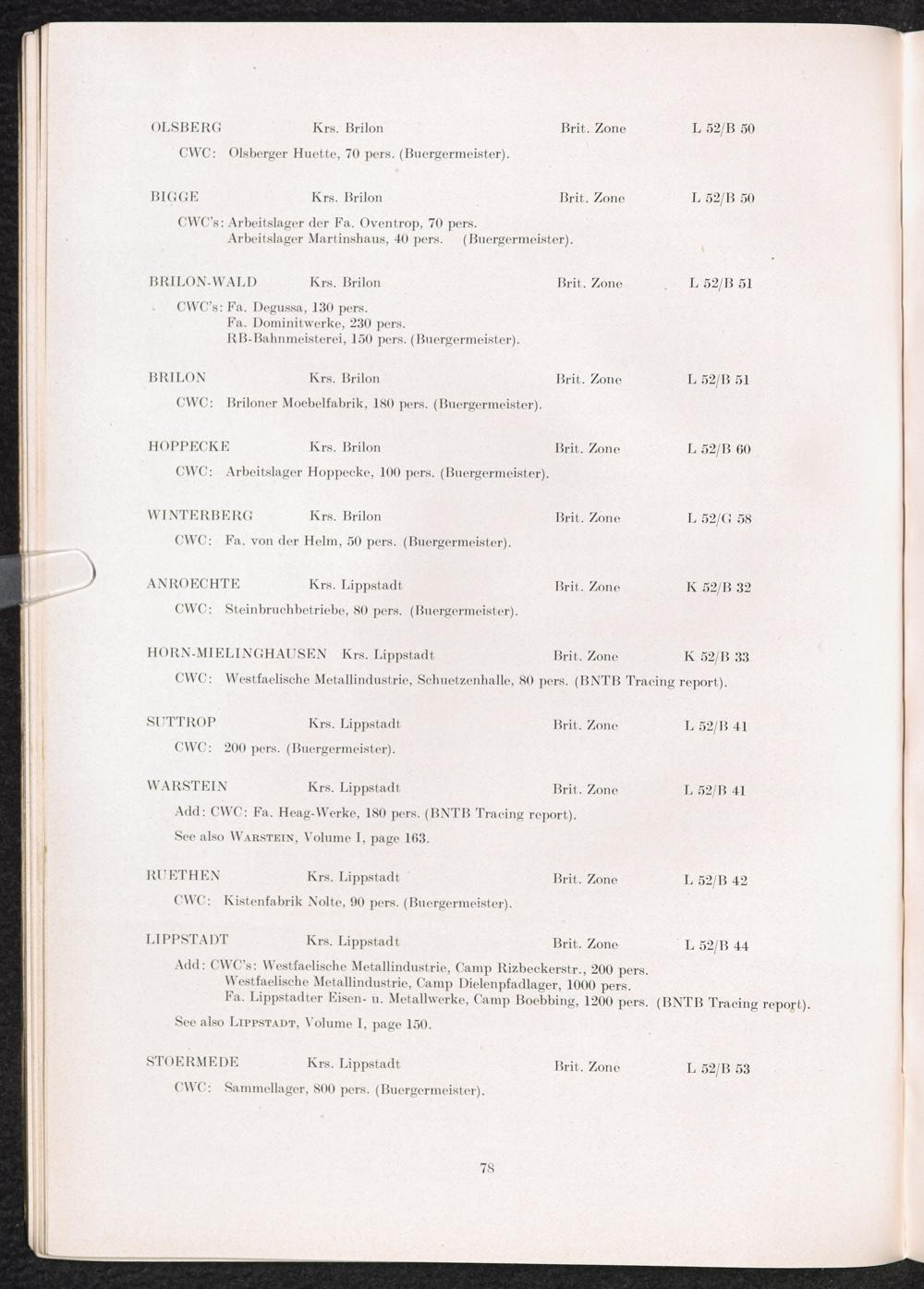 Band 2 (1950) Catalogue of Camps and Prisons in Germany and german-occupied Territories Sept. 1st, 1939 - May 8th, 1945 - Vol. II