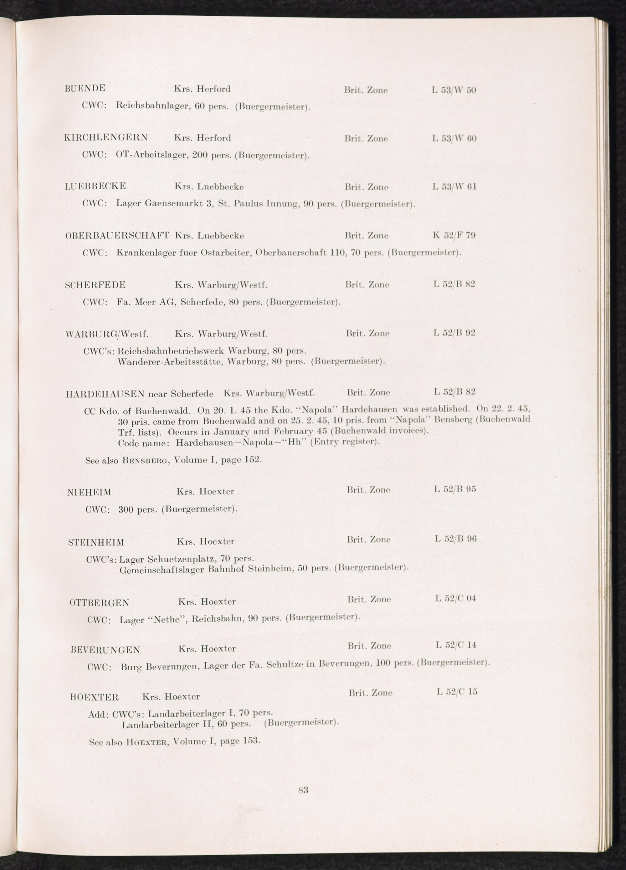 Band 2 (1950) Catalogue of Camps and Prisons in Germany and german-occupied Territories Sept. 1st, 1939 - May 8th, 1945 - Vol. II