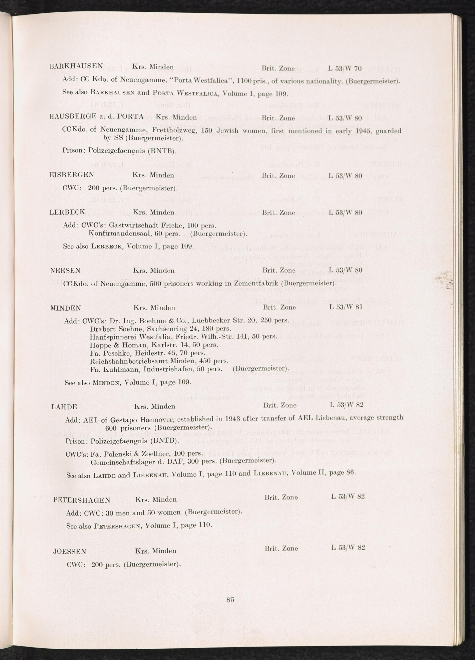 Band 2 (1950) Catalogue of Camps and Prisons in Germany and german-occupied Territories Sept. 1st, 1939 - May 8th, 1945 - Vol. II
