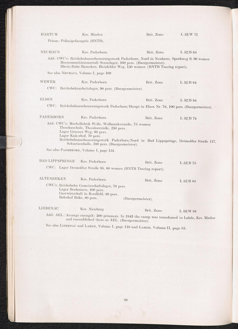 Band 2 (1950) Catalogue of Camps and Prisons in Germany and german-occupied Territories Sept. 1st, 1939 - May 8th, 1945 - Vol. II