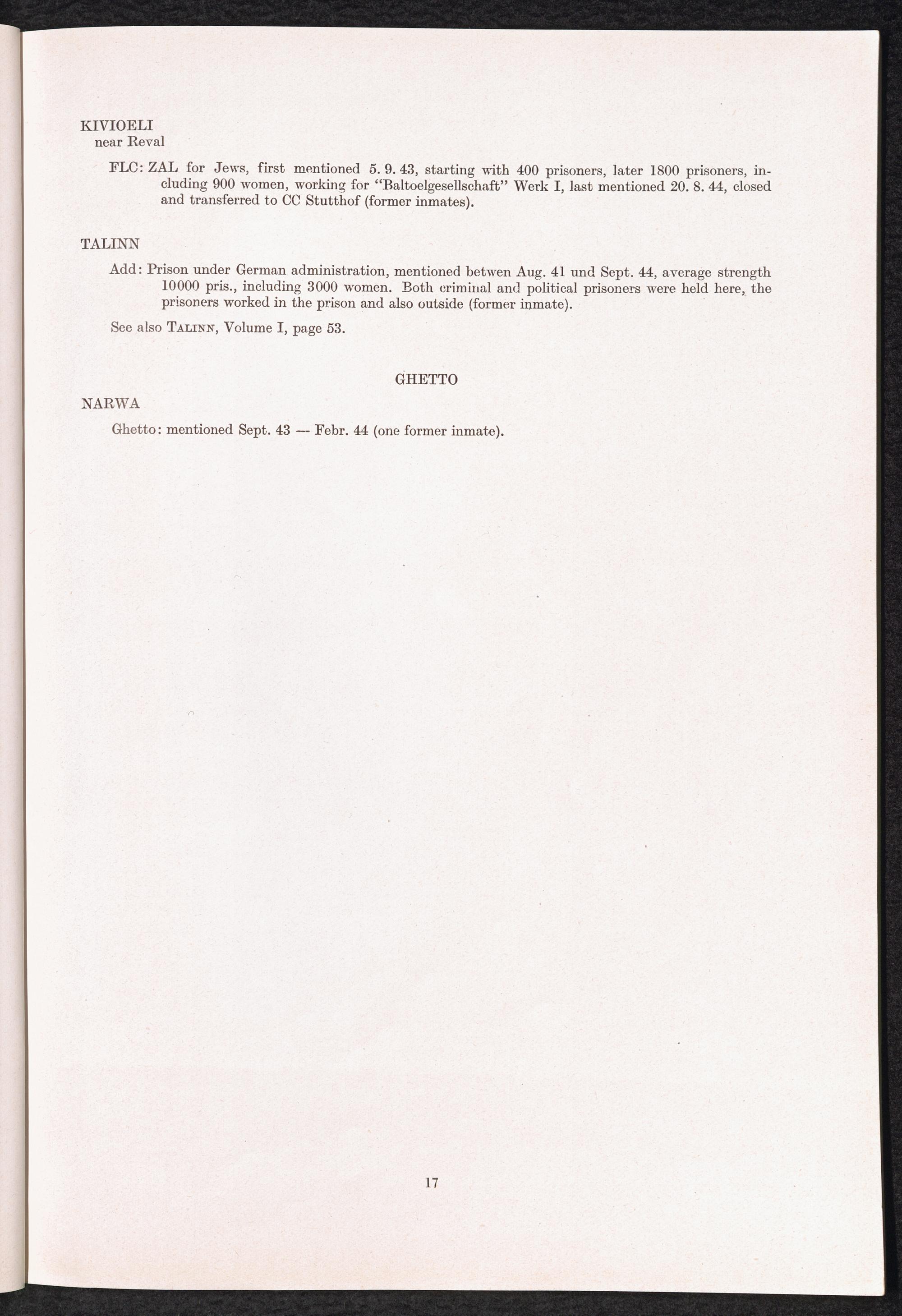 Catalogue of Camps and Prisons in Germany and german-occupied Territories Sept. 1st, 1939 - May 8th, 1945 : Supplement
