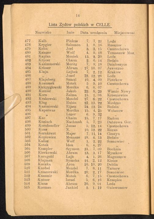 Sche'erith hapletah Lista Zydow polskich w Celle