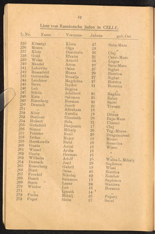 Sche'erith hapletah Liste von Rumänischen Juden in Celle