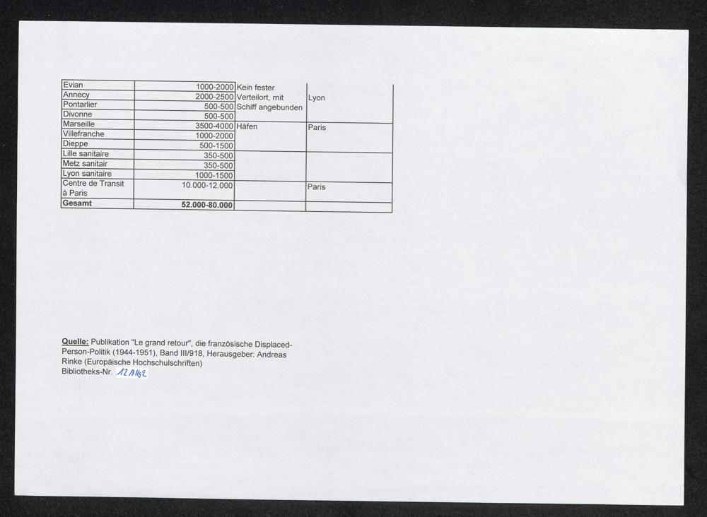 Verzeichnis MPDR-Lager für DP's in Frankreich, März 1945 / International Tracing Service