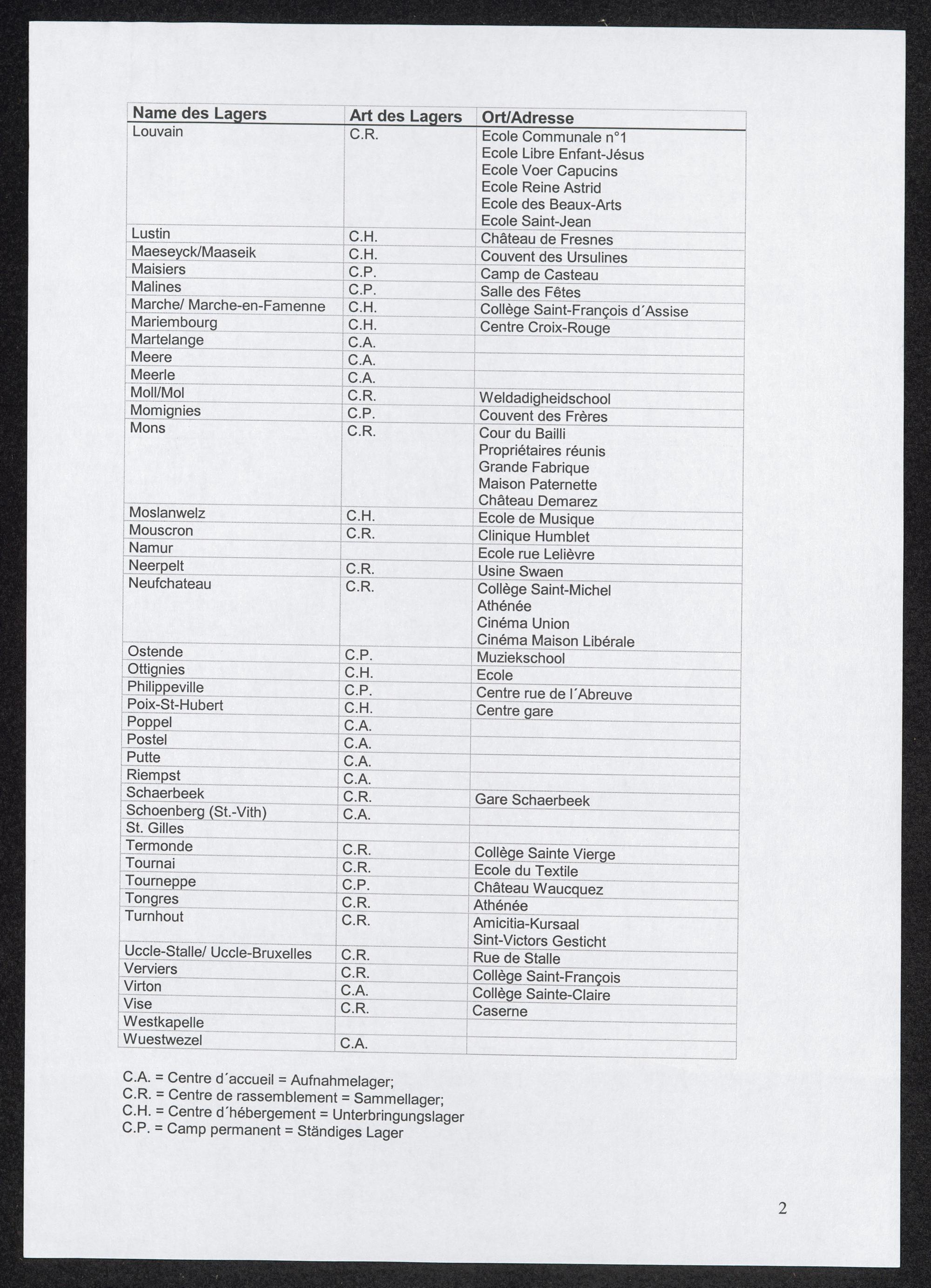 DP-Lager Verzeichnis Belgien / International Tracing Service