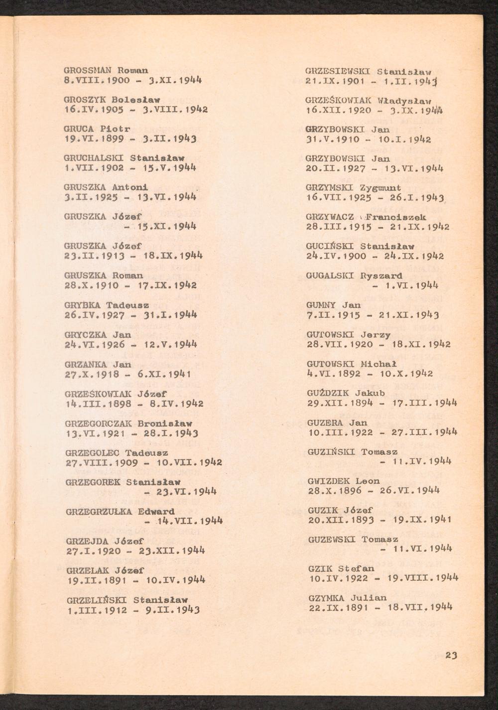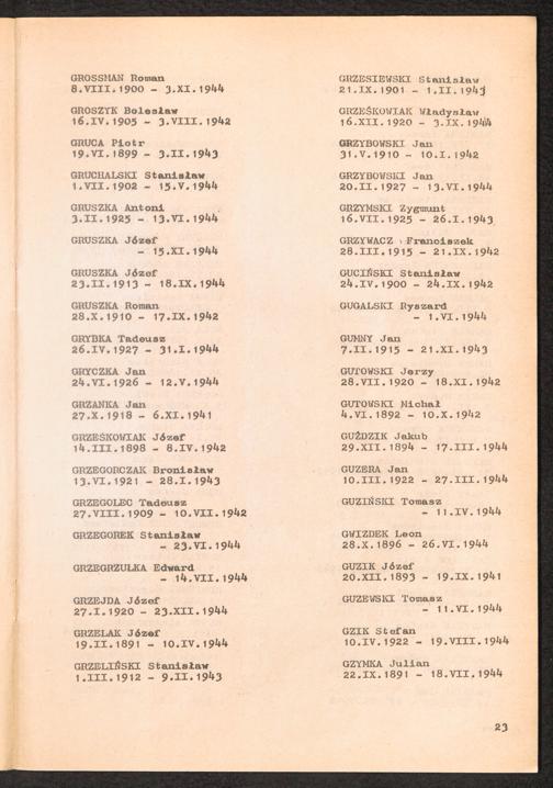 1981: Przezylismy Gross Rosen Tom III, Ksiega pomordowanych, Zeszyt 1 : Wykaz pomordowanych ze zbiorow Romana Olszyny