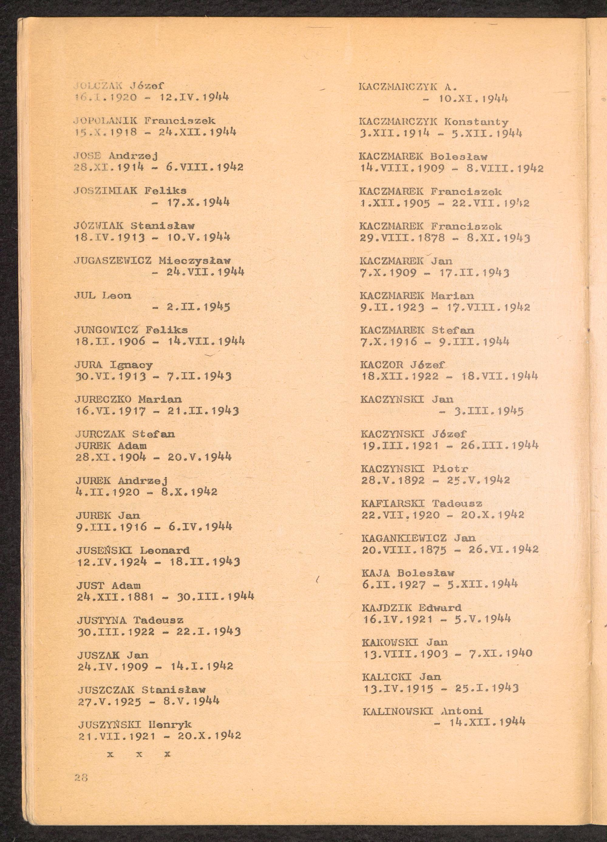 1981: Przezylismy Gross Rosen Tom III, Ksiega pomordowanych, Zeszyt 1 : Wykaz pomordowanych ze zbiorow Romana Olszyny