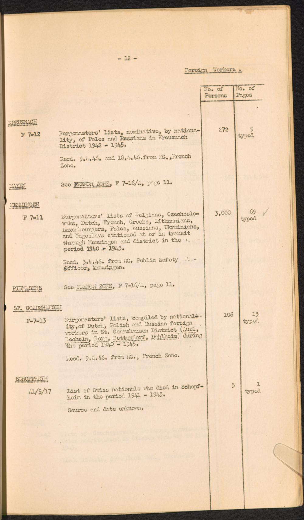 Accession List of Record and Documents Foreign Workers
