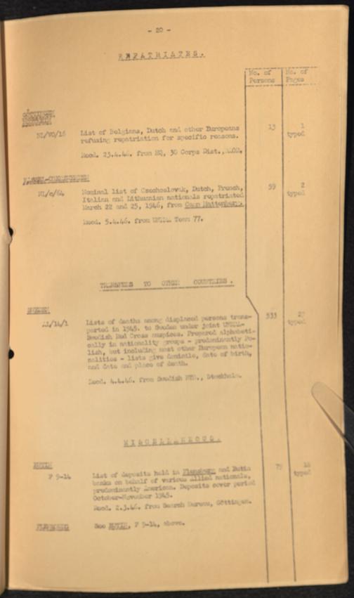 Accession List of Record and Documents Repatriates