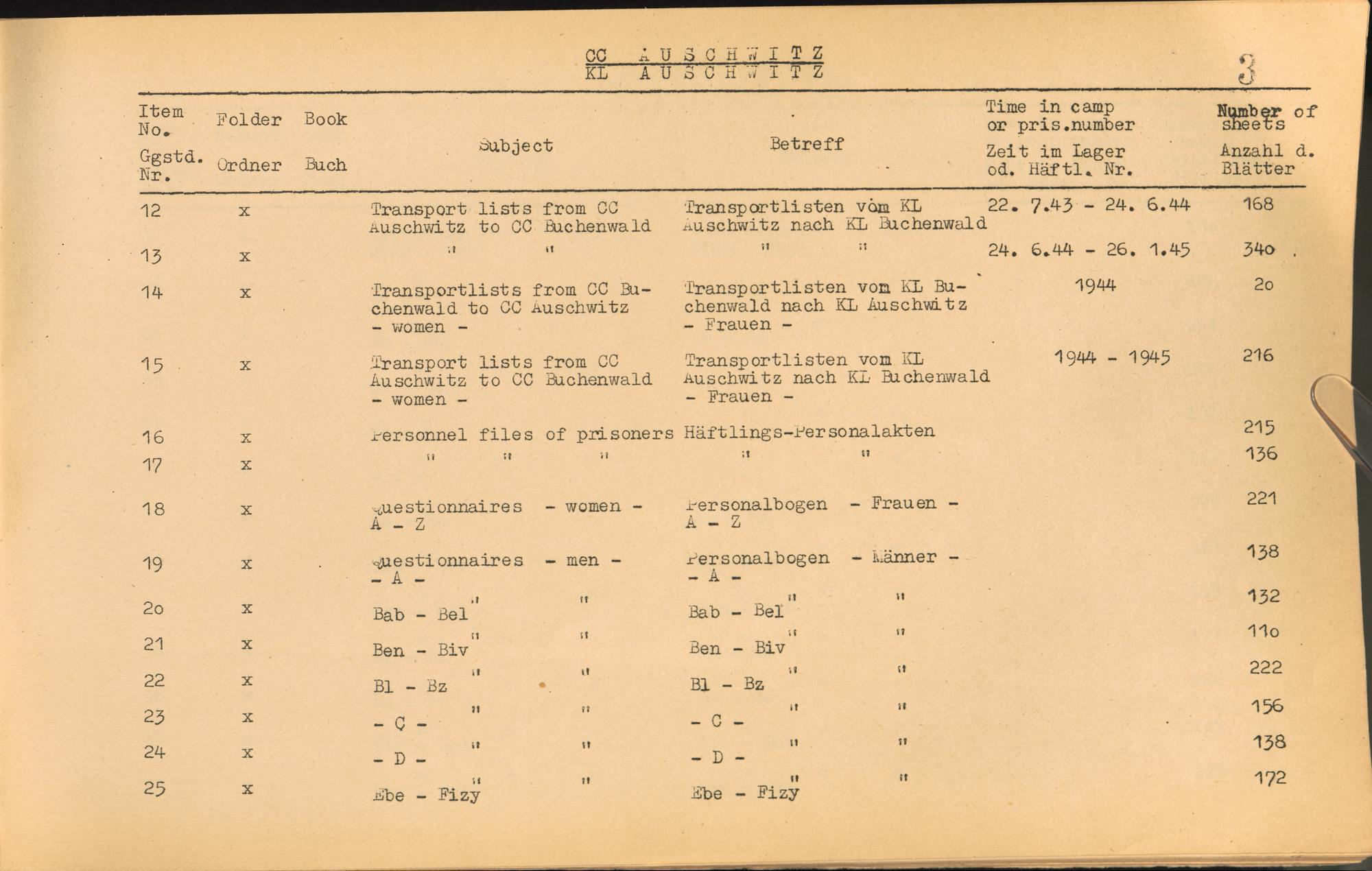 Catalogue of Records held by the International Tracing Service of the Allied High Commission For Germany at Arolsen : Vol. I